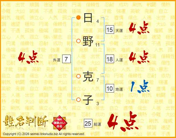 日野克子さんの総運は25画の4点!