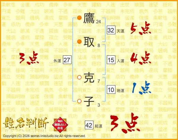 鷹取克子さんの総運は42画の3点!