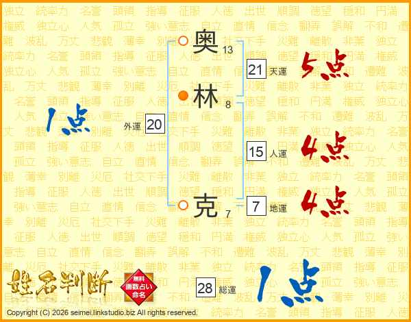 奥林克さんの天運は21画の5点!