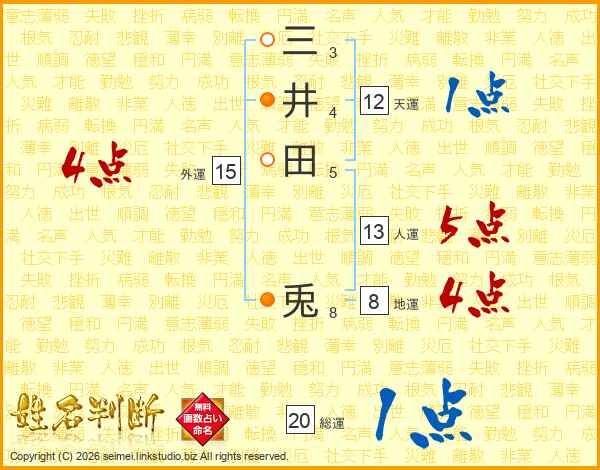 三井田兎さんの人運は13画の5点!