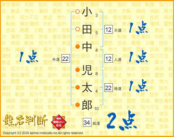 小田中児太郎さんの地運は22画の1点!