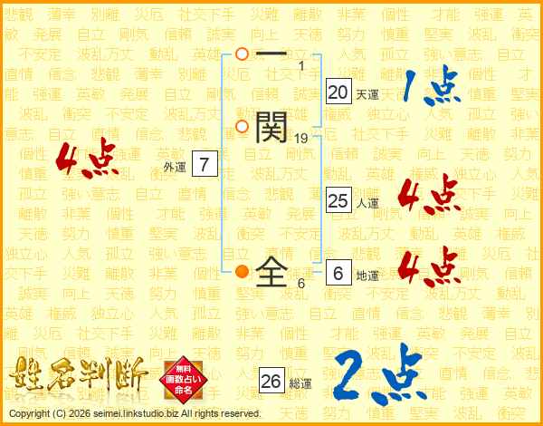 一関全さんの人運は25画の4点!