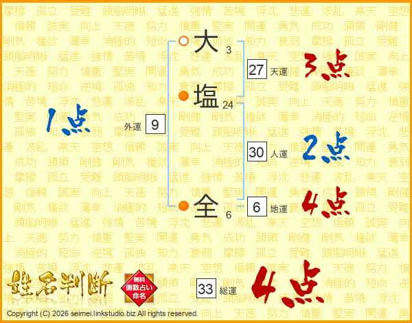 大塩全さんの総運は33画の4点!