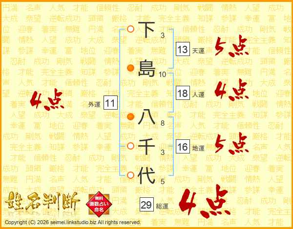 下(3画)島(10画) 八(8画)千(3画)代(5画)