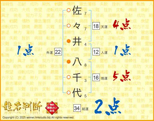 佐々井八千代さんの総運は34画の2点!