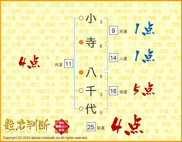 小(3画)寺(6画) 八(8画)千(3画)代(5画)