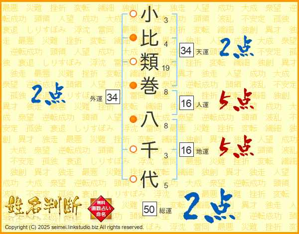 小比類巻八千代さんの総運は50画の2点!