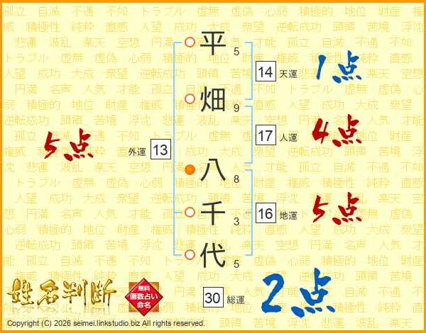 平畑八千代さんの総運は30画の2点!
