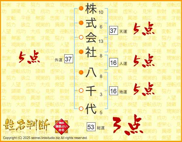 株式会社八千代さんの天運は37画の5点