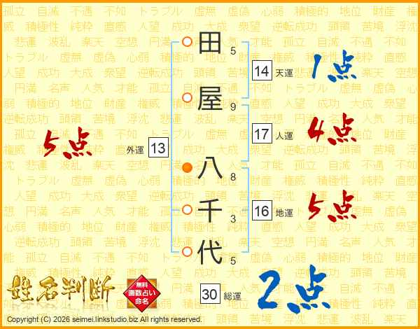 田屋八千代さんの天運は14画の1点!