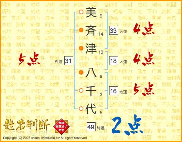 美斉津八千代さんの総運は49画の2点!