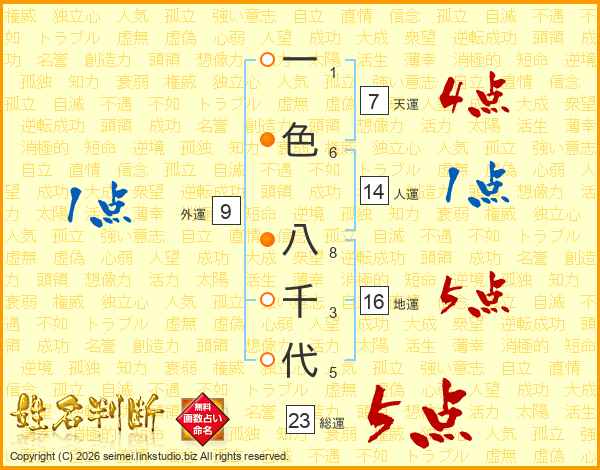 一(1画)色(6画) 八(8画)千(3画)代(5画)