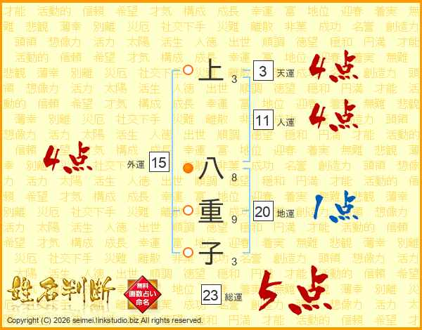 上八重子さんの総運は23画の5点!