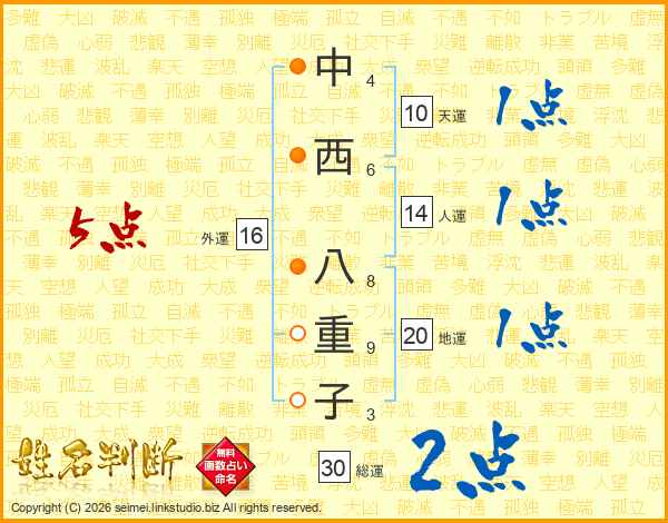 中西八重子さんの総運は30画の2点!