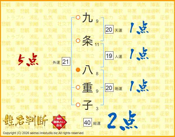 九(9画)条(11画) 八(8画)重(9画)子(3画)