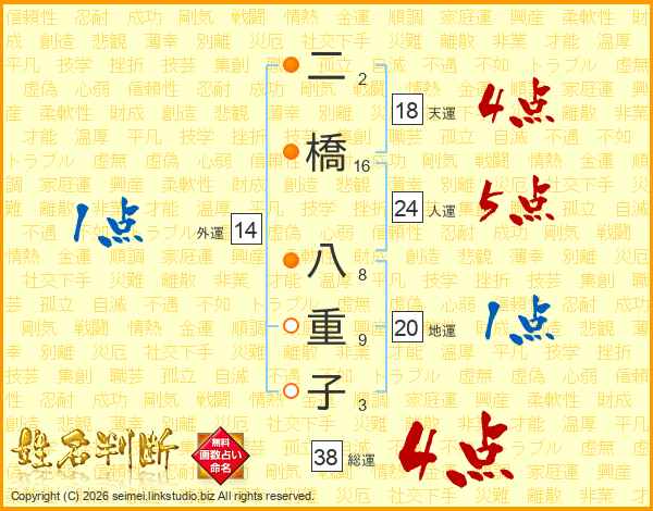 二橋八重子さんの総運は38画の4点!