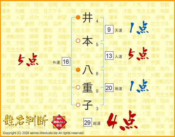 井(4画)本(5画) 八(8画)重(9画)子(3画)