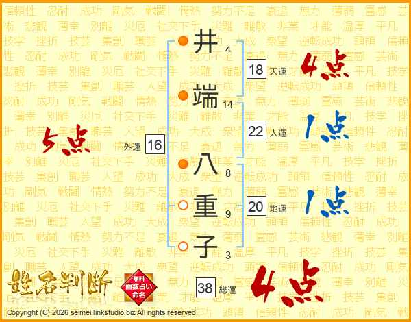 井端八重子さんの総運は38画の4点!