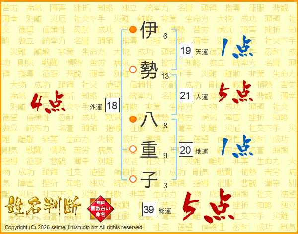 伊勢八重子さんの外運は18画の4点!