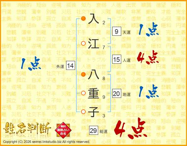 入江八重子さんの総運は29画の4点!