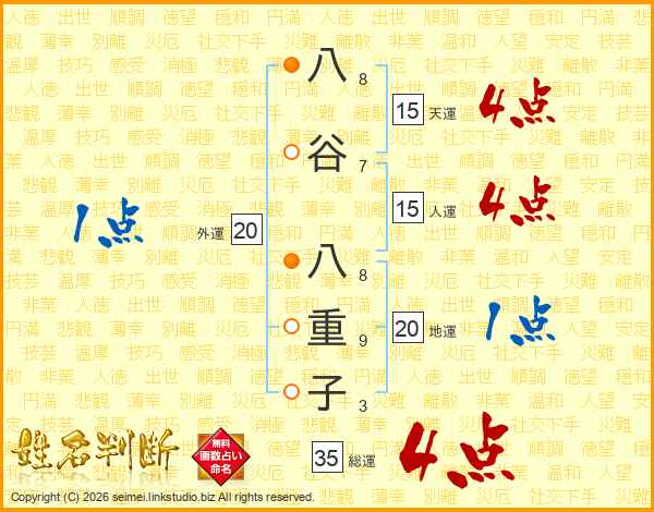 八谷八重子さんの総運は35画の4点!