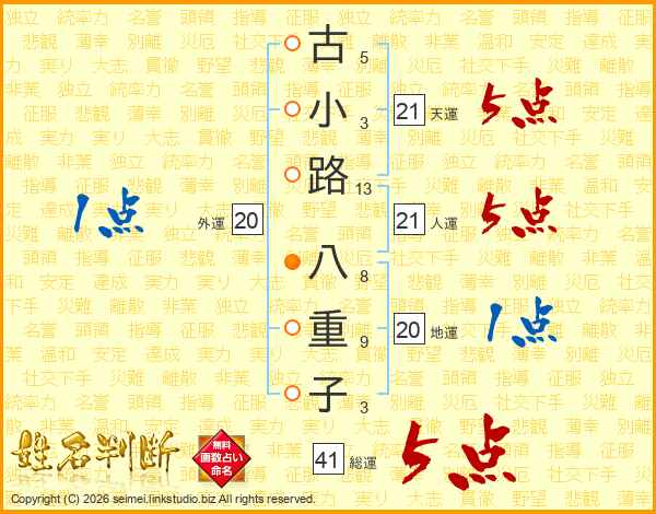 古小路八重子さんの総運は41画の5点!