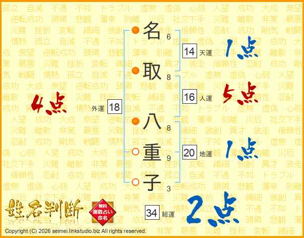 名(6画)取(8画) 八(8画)重(9画)子(3画)
