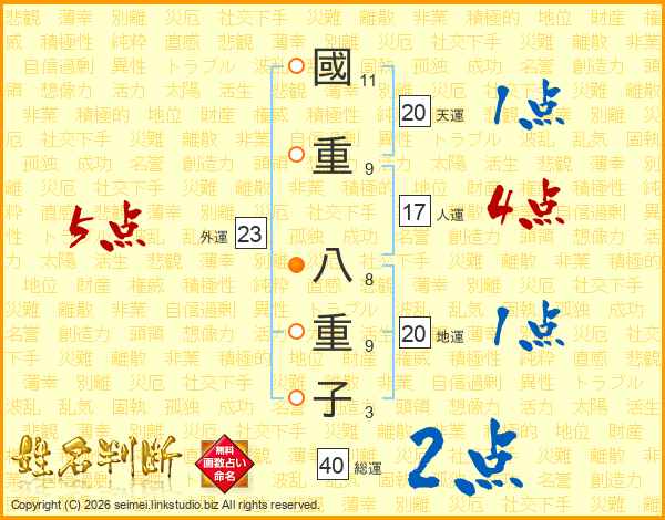 國重八重子さんの外運は23画の5点!