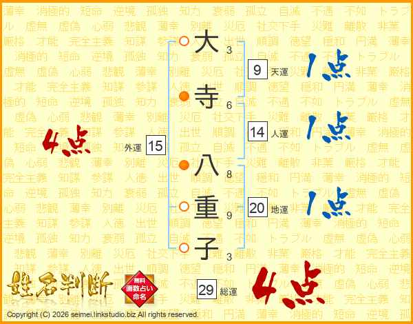 大寺八重子さんの総運は29画の4点!