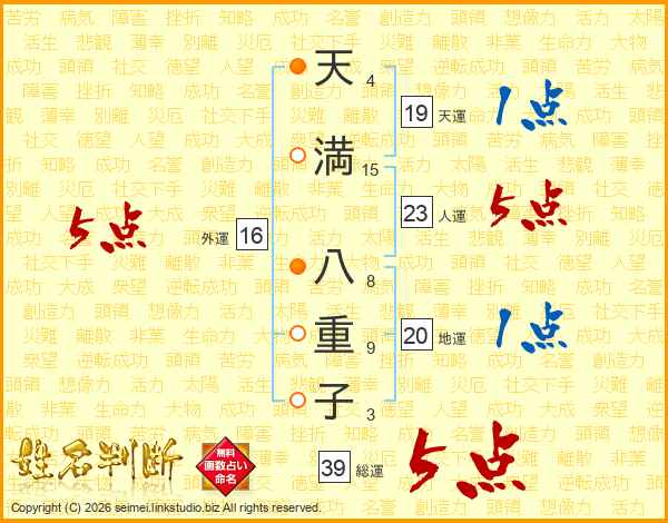 天満八重子さんの総運は39画の5点!