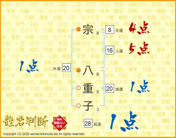 宗八重子さんの地運は20画の1点!