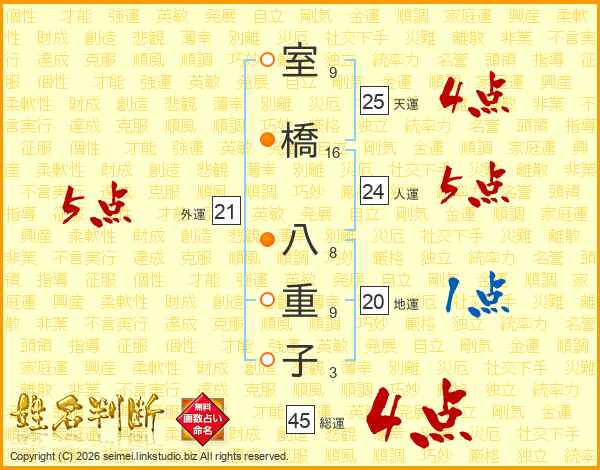 室橋八重子さんの総運は45画の4点!