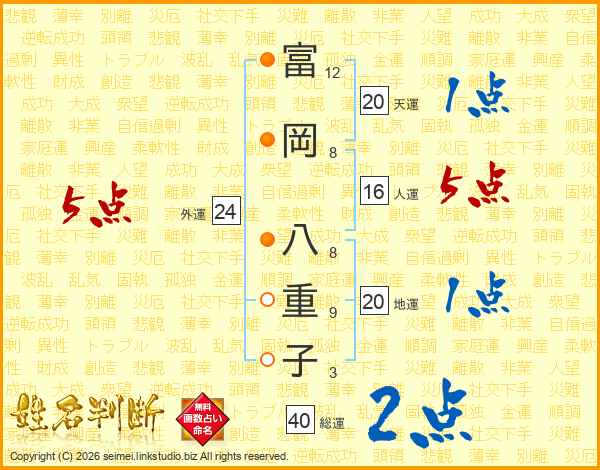 富岡八重子さんの総運は40画の2点!