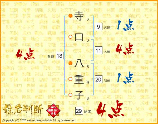 寺口八重子さんの総運は29画の4点!