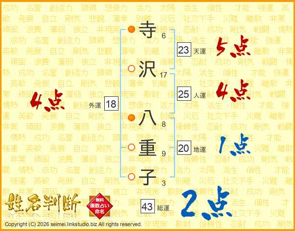 寺沢八重子さんの天運は23画の5点!