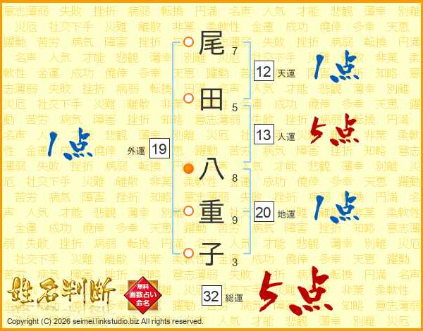 尾田八重子さんの総運は32画の5点!