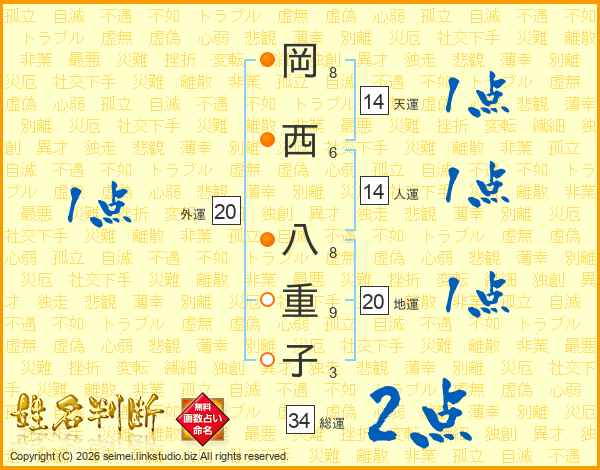岡西八重子さんの天運は14画の1点!