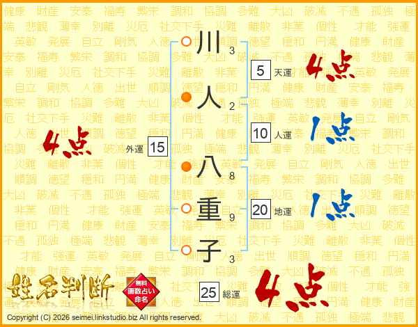 川人八重子さんの外運は15画の4点!