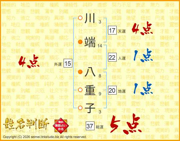 川端八重子さんの総運は37画の5点!