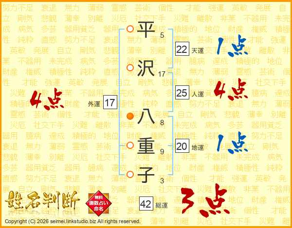 平沢八重子さんの外運は17画の4点!
