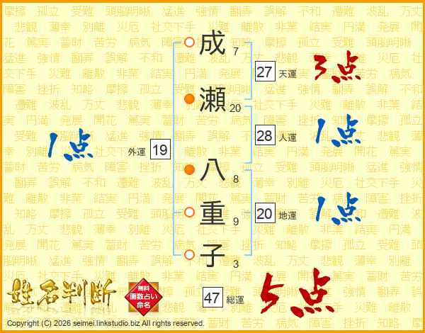 成瀬八重子さんの総運は47画の5点!