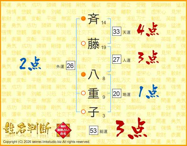 斉藤八重子さんの天運は33画の4点!