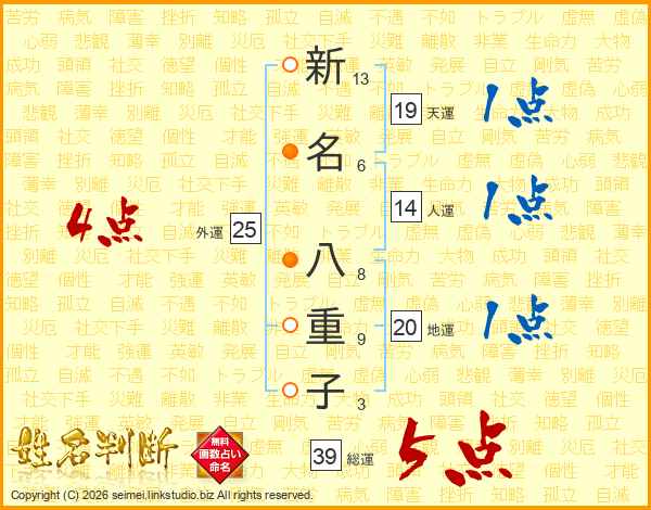 新名八重子さんの総運は39画の5点!