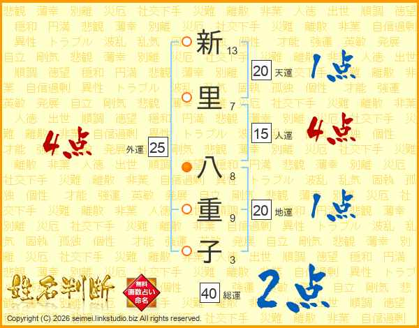 新里八重子さんの総運は40画の2点!