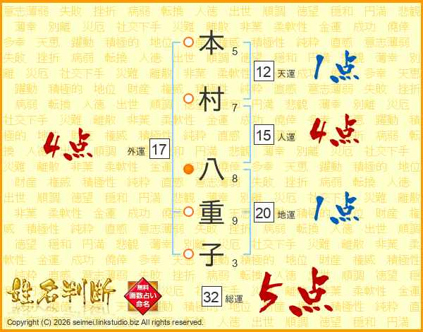 本村八重子さんの総運は32画の5点!