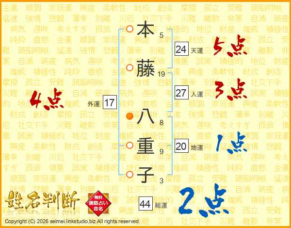 本藤八重子さんの総運は44画の2点!