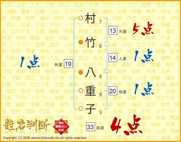 村竹八重子さんの総運は33画の4点!