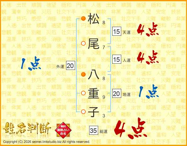 松尾八重子さんの総運は35画の4点!