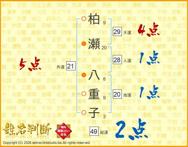 柏瀬八重子さんの総運は49画の2点!