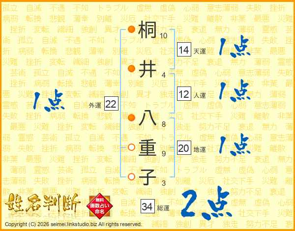 桐井八重子さんの総運は34画の2点!